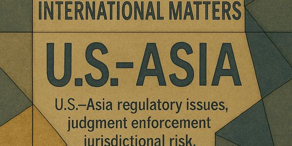 U.S.–Asia regulatory issues, judgment enforcement, jurisdictional risk, and cross-border transactional matters.