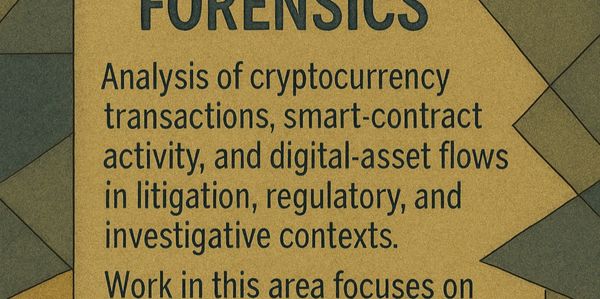 Analysis of cryptocurrency transactions, smart-contract activity, and digital-asset flows in litigation, regulatory, and investigative contexts. Work in this area focuses on evidentiary reliability, tracing methodology, and the intersection of technical findings with legal standards, including discovery, expert testimony, and cross-border enforcement.